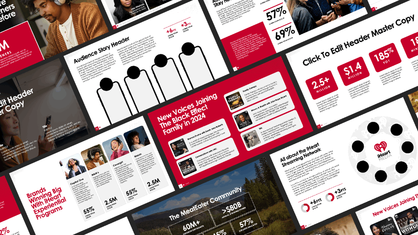 iHeartCafe 2025 iHeartMedia B2B Deck Templates iHeart Podcast Awards Template Deck WTTM Deck Template NYCCT Entertainment Magazine Typographic Accordion Booklet Cat Den